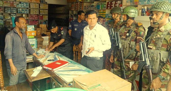 শায়েস্তাগঞ্জ পৌরশহরের হাট-বাজার ও বিভিন্ন দোকানে ভ্রাম্যমান আদালতের অভিযান।