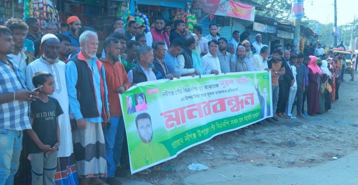পৌর বিএনপির যুগ্ম আহবায় নুরুল আমিনের উপর মিথ্যা মামলার প্রতিবাদে মানববন্ধন।