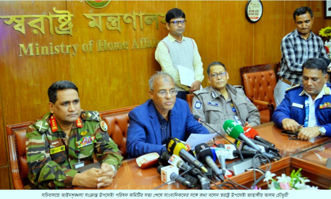 সোমবার স্বরাষ্ট্র মন্ত্রণালয় সভাকক্ষে আইনশৃঙ্খলা সংক্রান্ত উপদেষ্টা পরিষদ কমিটির ২০তম সভা।