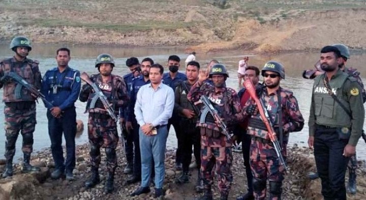 সুরমা নদীর উপর নির্মিত অবৈধ বাঁধ অপসারণ করেছে প্রশাসন।